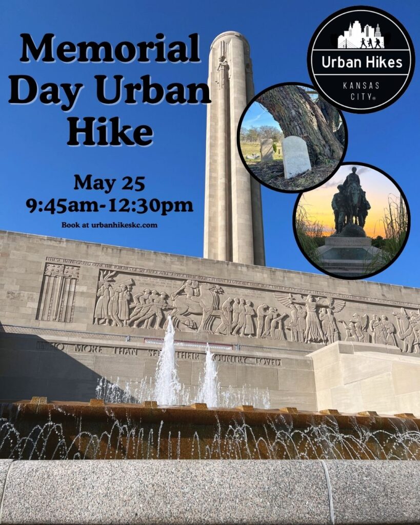 Starting Point: Union Cemetery Honor those who have served on a Memorial Day Urban Hike through KC's historic landmarks and memorials. Begin with a planned ceremony ending with Taps at Union Cemetery, see the South Korean War Memorial, visit the Pioneer Mother Statue in Penn Valley Park, Union Station and Liberty Memorial. This will be a reflective urban hike honoring history, service, sacrifice and the city's past. For an additional $5 ride up to Liberty Memorial's tower. Every hiker that day will receive a handmade poppy flower. 3 hrs Cost $38 p/p ($5 discount for veterans & seniors) $5 optional ticket to the top of the Liberty Memorial Tower